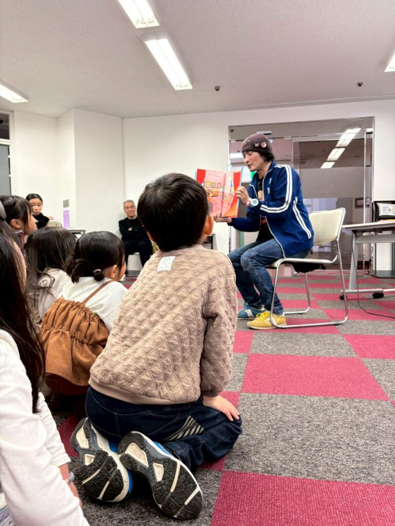続いては、中垣ゆたか先生による絵本読み聞かせとオリジナルマグネット「額」づくりです。