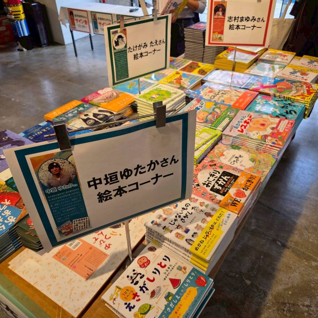 絵本展示コーナーには、絵本作家さんの本コーナーをご用意し、その場でサイン会も行いました。