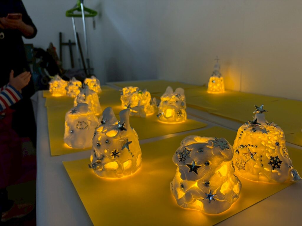 作った後にみんなで点灯式を行い、その輝きには歓声が沸き起こりました。
