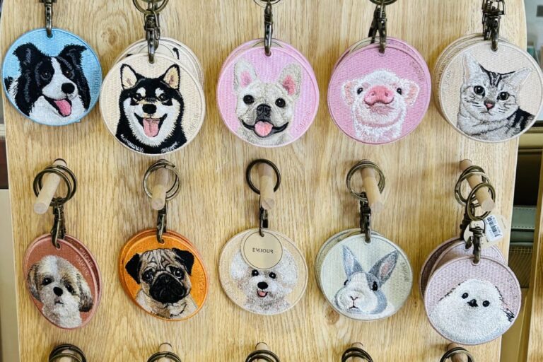かわいい犬や猫が両面に刺繍されたキーホルダーです。 好評につき「パンダ」「しまえなが」等今までなかった柄も入荷…